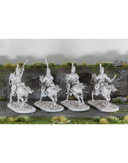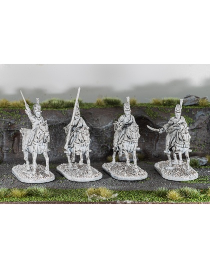 From left to right there are an NCO, Ensign Standard Bearer, Trumpeter and an officer.