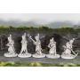 The set consists of 2 sappers with axes, two with shovels and one with a pickaxe. They wear the distinctive aprons.